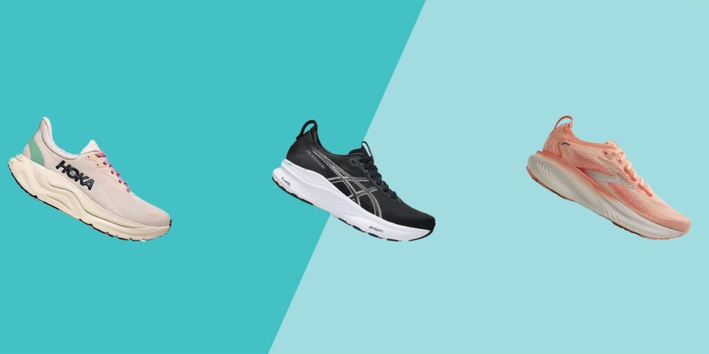 ✔️ Balanced cushioning. Pourziaee recommends looking for a “balanced level” of cushioning that’s not overly soft or unstable. “Those with normal and high arches [should] look for a shoe with extra cushioning and shock absorption as well as a curved last shape,” says Sharkey.