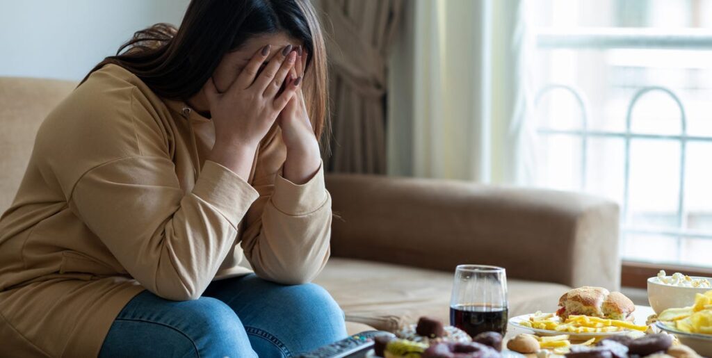 Celio also notes that when you don’t eat for long periods of time, your blood sugar can drop and your emotional state can turn into what many people call “hanger.” This can result from spikes in blood sugar when we don’t eat nutritious, fiber-rich foods. This is why skipping meals is a poor choice when trying to avoid emotional eating.