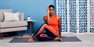 This position stretches the groin, thighs, torso, and shoulders. Because you’re standing on one leg, it also challenges your ability to balance. If you’re feeling particularly “unbalanced” in your life, this pose might help you to refocus and center yourself.