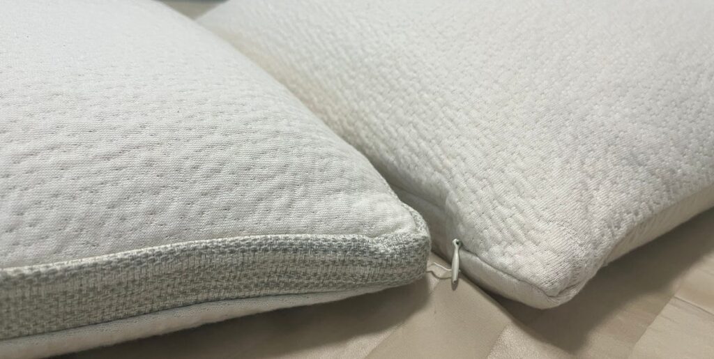 Both pillows are housed inside a soft and breathable GOTS-certified organic cotton cover that is cool to the touch and wrinkle resistant. But, for the most part, that’s where their similarities end. The fillings are vastly different.