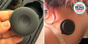 The Chirp Halo is an at-home device that comes with two small magnetic devices (or “pucks”) that attach to sticky pads on your skin. It helps support recovery by using targeted mini jolts of electricity to stimulate your muscles. It’s very easy to use, and there’s an app to help guide you through placement on your body.